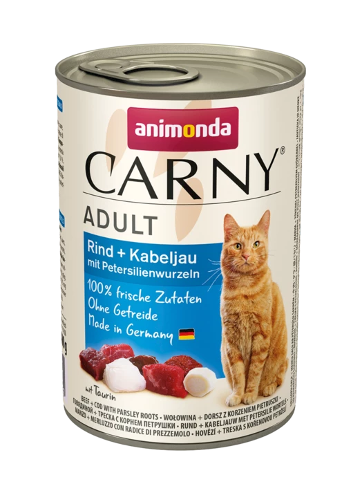 Proposez-lui les aliments Carny Adult composés de nutriments et de vitamines de la plus haute qualité pour qu’il se sente bien chaque jour. Les produits utilisés dans la recette proviennent uniquement des meilleures exploitations, caractérisées par la qualité allemande et le souci du détail. La base de chaque aliment de la gamme Carny est le bœuf frais, qui est une excellente source de protéines. Cela aidera votre animal à conserver une silhouette svelte tout en maintenant une masse musculaire et une graisse corporelle adéquates. Cela lui garantira une bonne forme physique et une bonne vitalité pendant de nombreuses années. La précieuse teneur en vitamines améliore le système immunitaire naturel et neutralise les radicaux libres, ce qui améliore la qualité de vie de votre animal et garantit sa santé à long terme. La viande de lapin, tendre et facile à digérer, réduit le risque d’allergies et améliore l’appareil digestif. De plus, la formule d’aliments humides hydrate adéquatement l’organisme pour favoriser le fonctionnement des voies urinaires et des reins. Le goût excellent de la formule a été obtenu sans colorants, conservateurs ou arômes artificiels, ce qui, en plus d’une bonne santé, garantit une satisfaction à 100% à chaque repas, ce dont votre chat vous sera immensément reconnaissant.