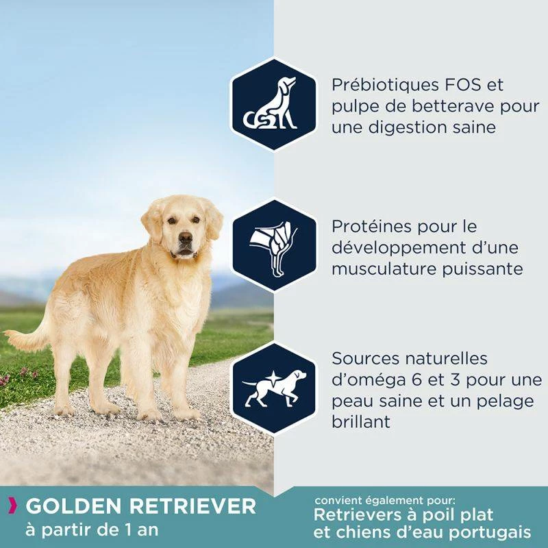 La formule EUKANUBA Breed Specific pour golden retrievers (convenant également parfaitement aux retrievers à poil plat, chiens d’eau portugais, épagneuls d’eau irlandais et griffons italiens) a été soigneusement élaborée pour permettre à votre chien de vivre une longue vie en bonne santé.