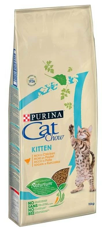 PURINA® CAT CHOW® Kitten est un aliment sec pour chaton qui contient tous les nutriments essentiels Ă ses besoins, pour une croissance optimale. Il contient NaturiumTM, une combinaison spĂ©cifique de fibres d’origine naturelle qui contribue au bon fonctionnement du système digestif.