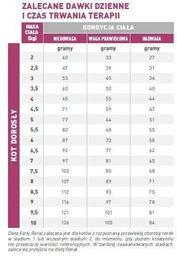 Le régime Early Renal est recommandé pour les chats chez qui on a diagnostiqué une insuffisance rénale chronique de stade 1 ou de stade 2 précoce, jusqu’à ce que le taux de créatinine soit inférieur aux valeurs de référence.