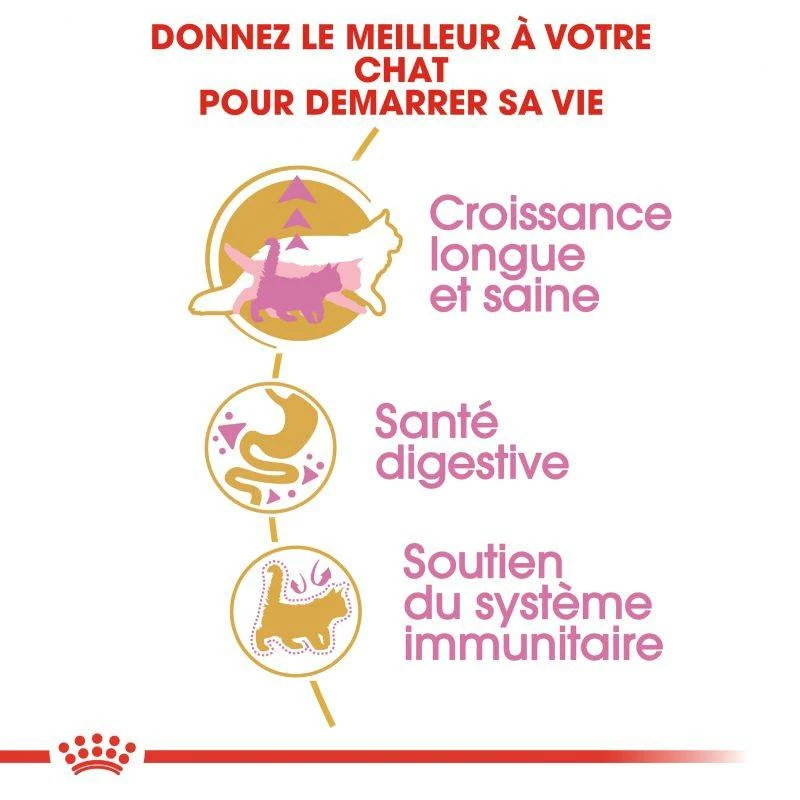 ROYAL CANIN Maine Coon Kitten est un aliment spĂ©cialement formulĂ© pour les chatons Maine coon. Une alimentation bien adaptĂ©e assure le bon dĂ©veloppement du chaton tout au long de sa pĂ©riode de croissance. Le système digestif du chaton est encore en dĂ©veloppement. Les protĂ©ines de haute qualitĂ© sont importantes pour une bonne digestion. Les aliments ROYAL CANIN Maine Coon Kitten contiennent des protĂ©ines L.I.P. hautement digestibles et des prĂ©biotiques pour favoriser l’Ă©quilibre de la flore bactĂ©rienne intestinale. Le système immunitaire se dĂ©veloppe tout au long de la pĂ©riode de croissance.