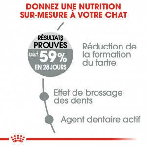 L’utilisation exclusive de l’aliment Oral Care produit des rĂ©sultats visibles après seulement 28 jours : une rĂ©duction de l’accumulation de tartre allant jusqu’Ă 59%**.