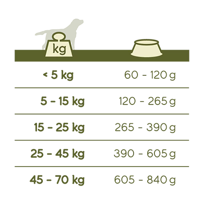 | 45 – 70 kg | 605 – 840 g |