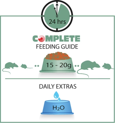 Pour les rats et les souris, la dose quotidienne moyenne recommandée est d’environ 15-20g.