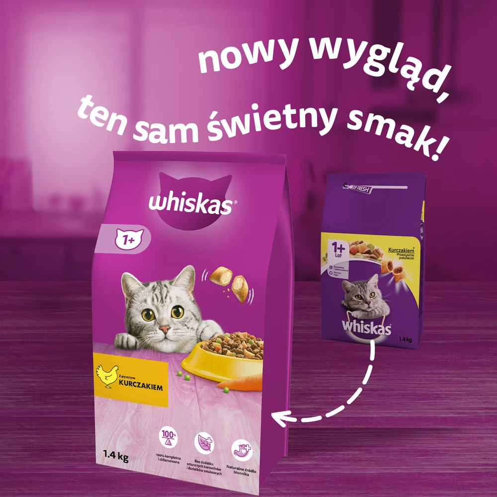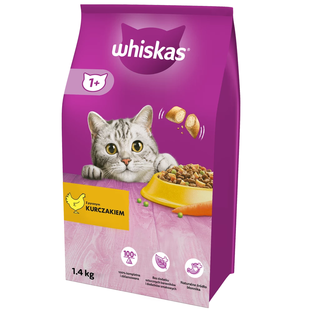 Whiskas au poulet délicieux est un aliment sec complet avec des pâtés croustillants à l’extérieur et une farce tendre à l’intérieur que les chats adorent. Les granulés contenant des protéines de haute qualité sont soigneusement formulés pour donner à votre ami félin tout ce dont il a besoin pour ronronner. La recette complète et équilibrée avec des légumes sains et appétissants – carottes et petits pois – fournit à votre chat la dose parfaite de tous les nutriments essentiels – y compris les vitamines et les minéraux. Grâce aux aliments Whiskas, qui sont préparés avec des ingrédients de haute qualité provenant uniquement de fournisseurs de confiance, votre chat est heureux, en bonne santé et impatient de venir à la gamelle à chaque fois à l’heure du repas.